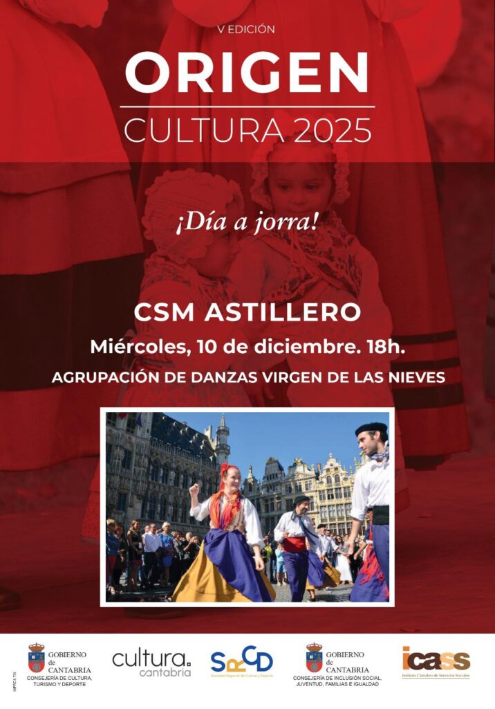 a Agrupación de Danzas Virgen de las Nieves de Tanos. Miércoles 10 de diciembre, 18.00 Posted on November 25, 2025 by Pablo La Agrupación de Danzas Virgen de las Nieves de Tanos actuará el miércoles 10 de diciembre desde las 18.00 en el Centro Social de Mayores de Astillero Post navigation « Concierto de Navidad de Liébana Tradicional en. Viernes 12 de diciembre, 18.00Soltxu en La Central de Navajeda. Domingo 30 de noviembre, 18.30 »
